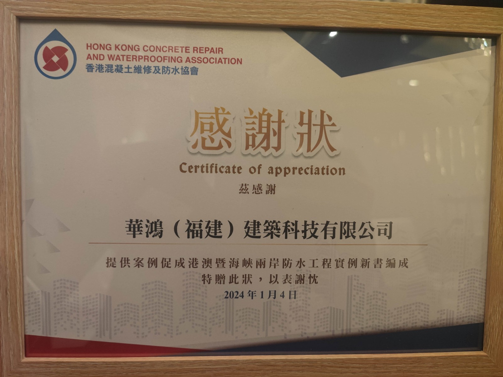 福建華鴻經(jīng)典工程案例榮獲入選《港澳暨海峽兩岸防水工程實例》一書